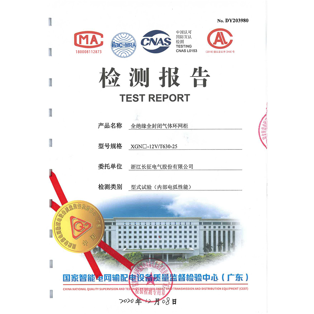XGN□-12V/T630-25全绝缘全封闭气体环网柜 检测报告