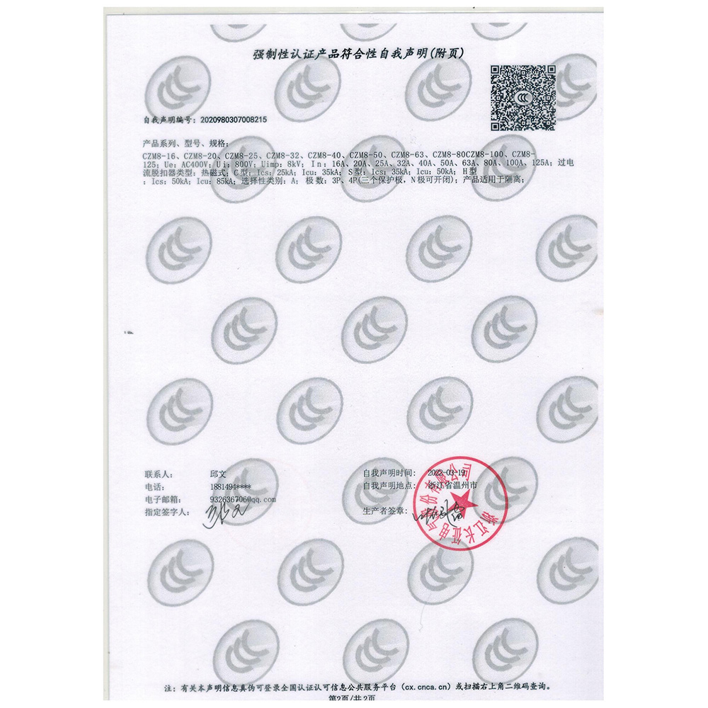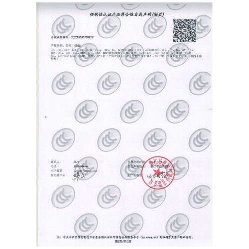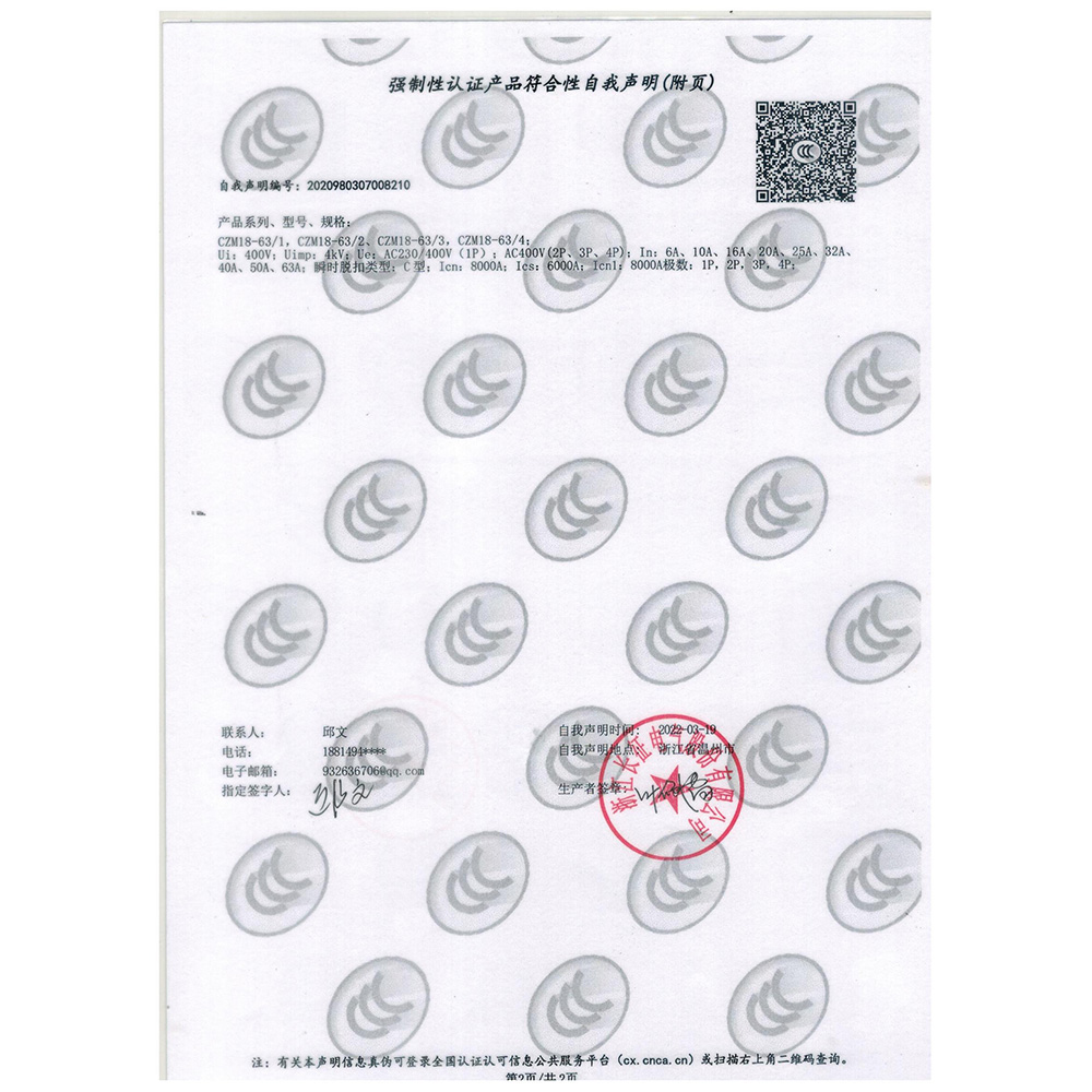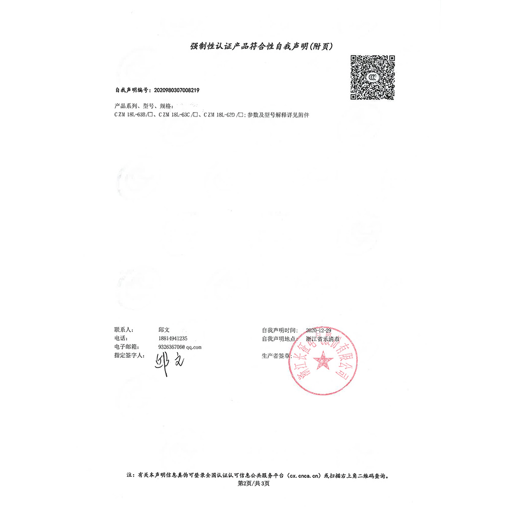 CZB3LE-40强制性认证产品符合性自我声明(附页)