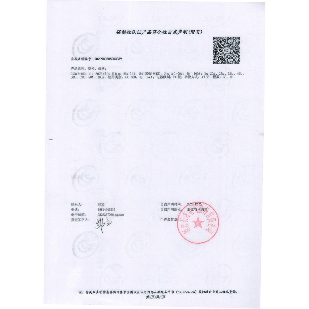 CZQ8-100强制性认证产品符合性自我声明(附页)