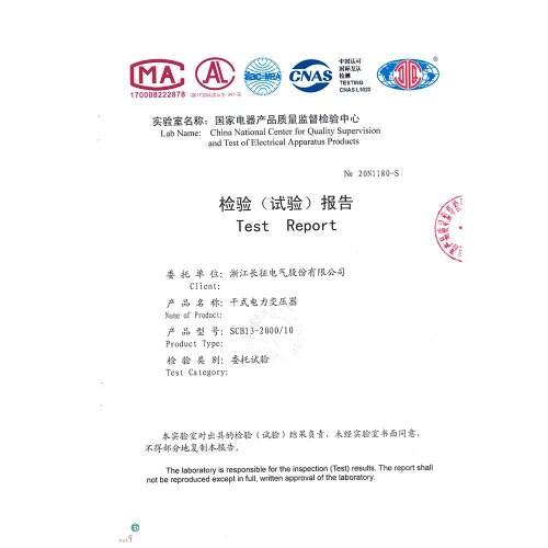 SCB13-2000/10干式电力变压器 检验报告