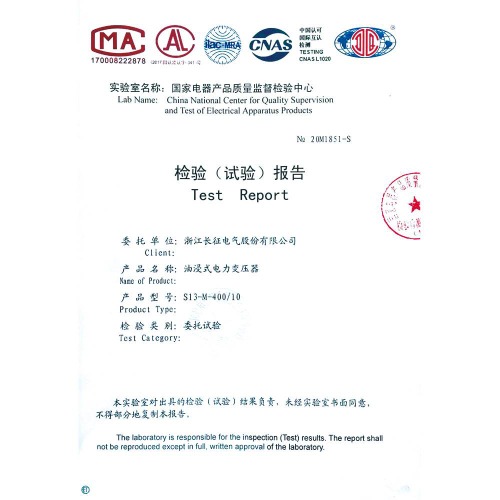 S13-M-400/10油浸式电力变压器 检验报告
