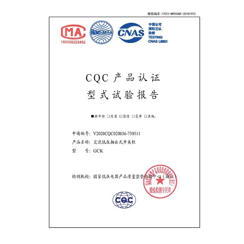 GCK(400A~1600A)交流低压抽出式开关柜 CQC型式试验报告