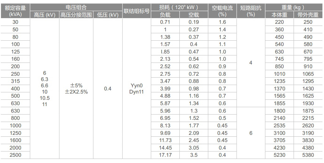 ● 最低气温-30℃(适用于户内式变压器) 。