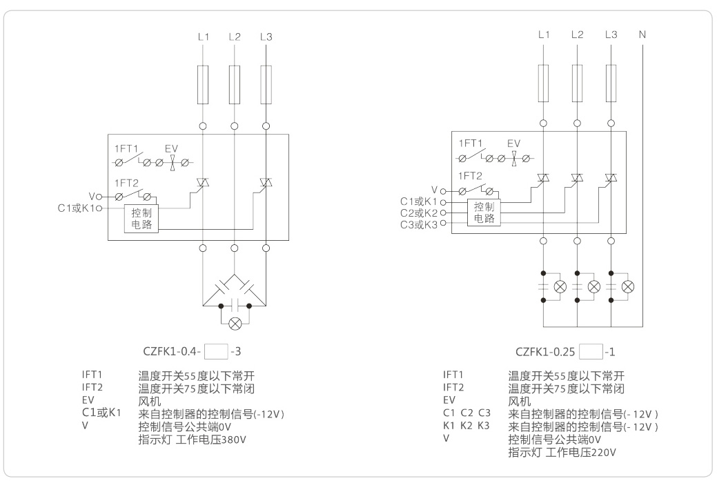 CZFK1系列复合开关是一种能够对电力并联电容器进行快速投切的电子型功率器件模块,其电气结构主要由大功率反并联晶闸管模块、隔离电路、触发电路、同步电路保护电路及驱动电路组成,并配有控制开关导通或截止的接线端子,控制逻辑电压0V(截止)、12V(导通)。本开关具有安装简单、维护方便、响应速度快、投切无涌流、工作无噪声、运行稳定可靠、缺相保护等特点。是无功功率动态补偿装置用投切电容器组的理想器件。