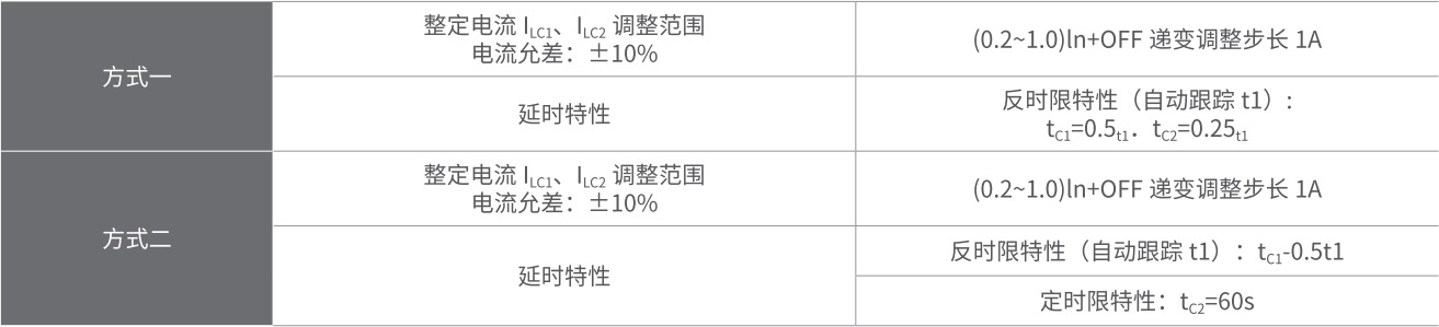 在低倍数电流时为反时限特性:当过载电流大于 8lr1 时自动转换为定时限特性。短延时 l2t 特性可“OFF”.此时呈定时限特性。