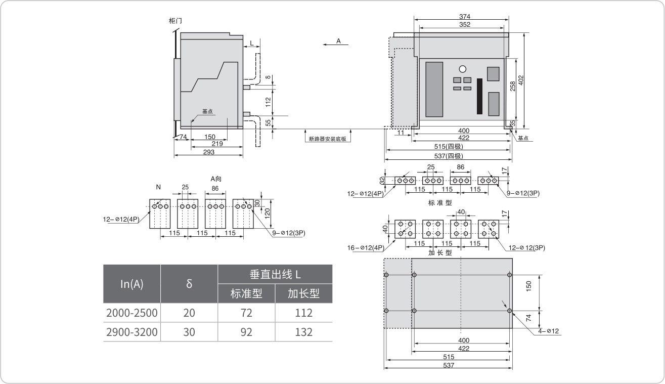 ◇ CZW1-3200 外形及安装尺寸图(抽屉式)